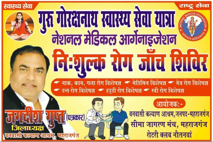 डीबीएस न्यूज। श्री गुरु गोरक्षनाथ स्वास्थ्य सेवा यात्रा दिनांक 25 एवम 26 दिसंबर को महाराजगंज जनपद के सीमावर्ती क्षेत्र में आयोजित है ,जिसमे निःशुल्क रोगी जांच तथा औषधि वितरण किया जाएगा।
