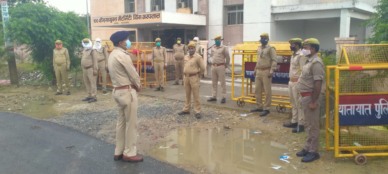 डीबीएस न्यूज, महराजगंज: आज रविवार को सदर क्षेत्राधिकारी अजय सिंह चौहान ने कोविड केयर हॉस्पिटल महराजगंज (100 शैया युक्त मैटर्निटी विंग अस्पताल) का औचक निरीक्षण किया और ड्यूटी में लगे पुलिस जवानों की सक्रियता को चेक किया। इसके साथ ही सीओ ने कोरोनावायरस से बचाव के इंतजाम का भी विधिवत दिशा निर्देश दिए। सीओ ने ड्यूटी पर पुलिसकर्मियों की समस्याओं को भी जाना और उन्हें तत्काल निस्तारित किए जाने की बात कही।