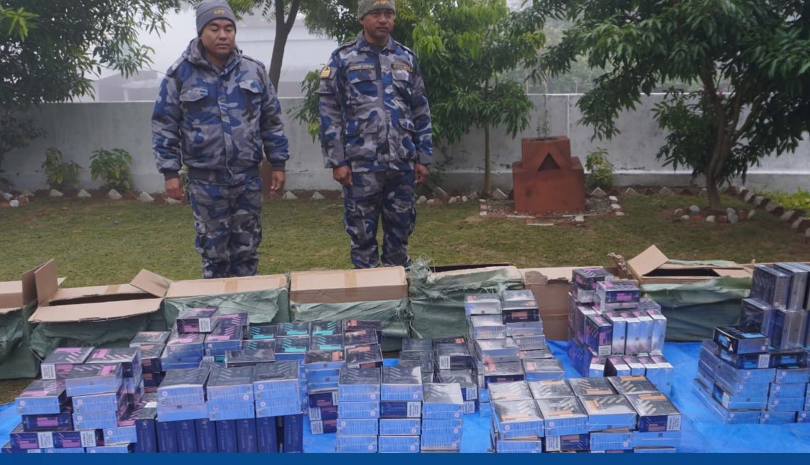 शसस्त्र पुलिस बल 26 सूचना अधिकारी गोविंद केसी ने बताया कि सूचना मिला कि भारी मात्रा में इलेक्ट्रिक सिगरेट भारत मे तस्करी की जा रही है। सूचना के बाद वेस्ट नवलपरासी के बॉर्डर एरिया से 45 लाख रुपये की इलेक्ट्रिक सिगरेट बरामद की है। पुलिस टीम ने उक्त बरामदगी पल्हिनन्दन रूरल म्युनिसिपैलिटी के वार्ड नंबर 6 के कब्रिस्तान के पास एक पुआल की झोपड़ी छिपाकर रखी गई थी। जहां से 1800 पीस सिंगरेट बरामद कर अग्रिम कार्यवाही के लिए भन्सार विभाग को सौप दिया गया है।